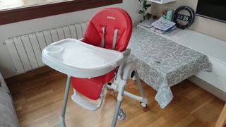 Trona peg perego muy práctica de 0 a 3 años, se tumba conpleta usada. hay q cambiar la funda polipiel q venden suelta costó 190e