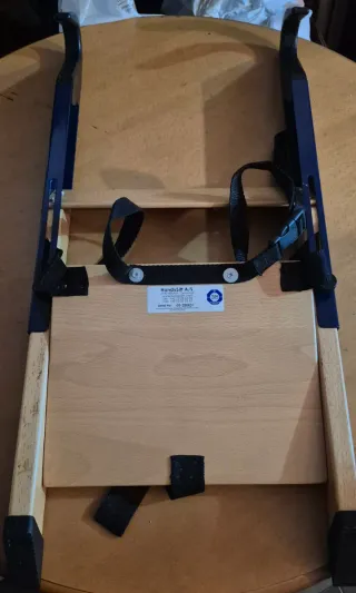 Trona portátil de madera y metal, ideal para llevar a cualquier parte. Se adapta a la mayoría de sillas. - Marca: HandySitt A/S - Material: Madera y metal - Correas de sujeción incluidas - Certificación TÜV. NO hago envios