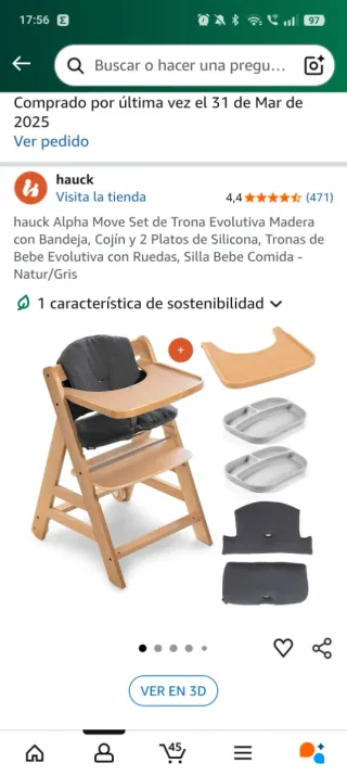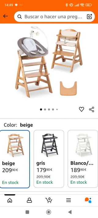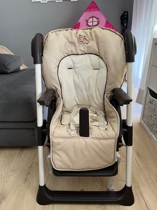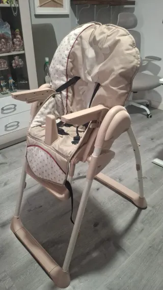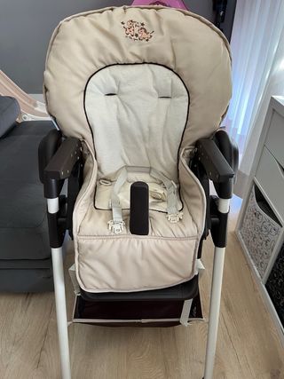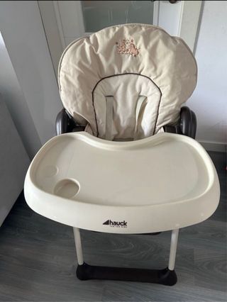 Trona evolutiva Hauck Beta+ beige Vendo trona evolutiva Hauck Beta+ en color beige, fabricada en madera de haya maciza, muy resistente y estable. Apta desde bebé y usable durante muchos años (hasta 90 kg). ✅ Asiento y reposapiés regulables en altura ✅ Ruedas traseras integradas para mayor seguridad y facilidad de movimiento ✅ Incluye dos piezas de madera: – Bandeja de madera – Pieza frontal más corta para cuando el niño ya se sienta a la mesa ✅ Cojín y arnés de seguridad incluidos Estado: muy buen estado general. El cojín y el arnés son lo más usado (han sido lavados varias veces), pero están en buen estado.