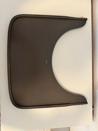 Bandeja de madera para trona Hauck. Fabricada en material resistente y fácil de limpiar. Solo tiene dos desperfectos en dos zonas que dejo en las fotos, fácil de retocar si se desea. - Color gris oscuro. - Diseño curvo para adaptarse a la trona.