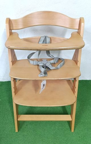 hauck Alpha Plus. Trona evolutiva de madera de haya. Para bebé desde los 6 meses hasta 90kg. Incluye arnés de 5 puntos y barra protectora. Color natural. **Más artículos de bebé, en mi perfil** (136.02) ##Por las dimensiones del producto, solo podemos enviarlo mediante Correos##