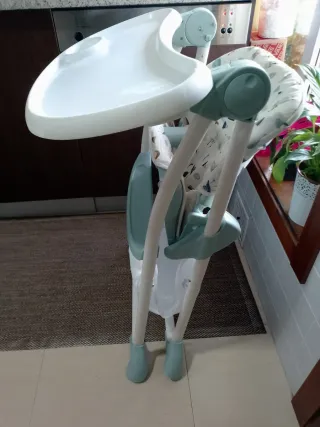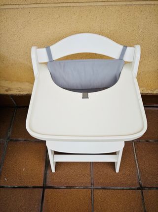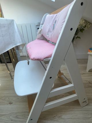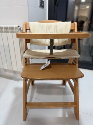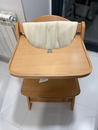 Trona de madera convertible en silla, ideal para acompañar el crecimiento del niño. - Material: Madera natural. - Diseño evolutivo. tengo la bandeja sin estrenar, las fundas se pueden quitar para lavar fácilmente.