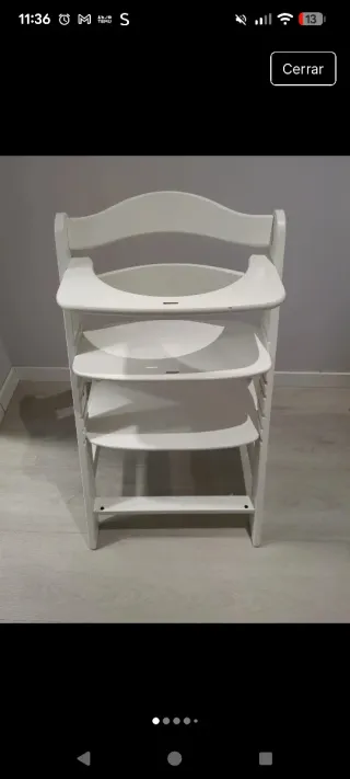 Trona evolutiva de la marca Hauck, fabricada en madera y de color blanco. Está perfecto salvo las fotos en las que se ve las marcas que tiene - Diseño moderno y funcional. - Material de madera resistente. - Color blanco.