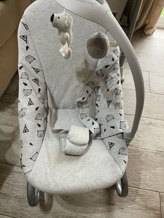 Sillita de comer para bebé, ideal para las comidas. - Cojín acolchado. - Arnés de seguridad. - Diseño moderno. - Totalmente regulable. (Diferentes alturas.) También incluye hamaca con móvil de dos ositos.Son dos piezas y se pueden intercambiar.
