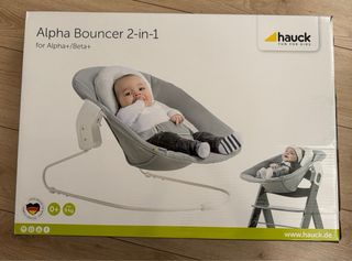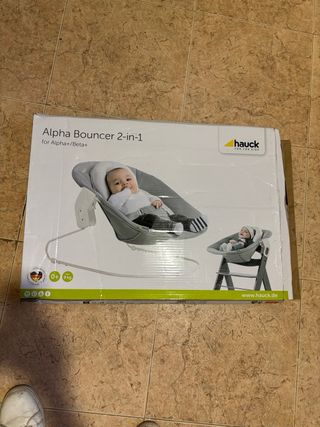 Hamaca para trona Hauck Alpha Bouncer, diseñada para adaptarse a la silla Alpha+/Beta+. - Color gris jaspeado con detalles blancos. - Incluye reductor acolchado para recién nacidos. - Barra de juguetes con peluches. Utilizada en trona evolutiva SafetyFirst. Para bebes de 0-9kg con varias posiciones de respaldo. Muy poco uso. Envoltorio original.