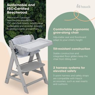 Preciosa trona de madera de haya Hauck Beta Plus, en muy buen estado. - Estructura de madera maciza. - Incluye arnés de seguridad y cojines. - Bandeja extraíble.