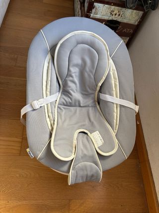 Hamaca para bebé de la marca Hauck, modelo Alpha Bouncer. Color beige. Mecedora 2 en 1 compatible con tronas de madera evolutivas Alpha plus y Beta plus. Con cojín reductor. Puede utilizarse como hamaca mecedora con el chasis que lleva incluído o como módulo de trona para recién nacidos, lo que permite al bebé estar a la altura de los ojos y en el núcleo familiar. Apto desde recién nacidos hasta 9kg. Arnés de sujeción de 3 puntos. La funda se puede quitar y lavar fácilmente. En su caja original. Peso 2,05kg. Medidas 66cm fondo, 49cm ancho, 45cm alto.