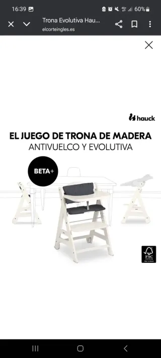 2 tronas de madera de la marca Hauck, ideal para que los más pequeños coman cómodamente. Tengo otra igual que la tengo desmontada, las 2 tronas 120€ y una sola 65€