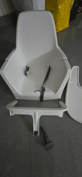 Trona de la marca Ikea, ideal para los más pequeños. - Estructura de plástico y metal. - Cojín textil para mayor comodidad de regalo con colchoneta - Bandeja extraíble. - se regala también cinturón que se compró a parte con varios puntos de sujeccion