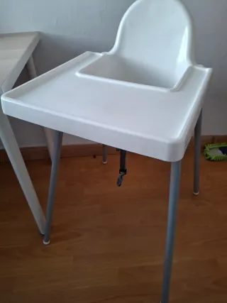 Trona infantil de la marca IKEA en color blanco. Perfecta para las comidas de los más pequeños. - Diseño moderno y funcional. - Material fácil de limpiar. - Incluye arnés de seguridad. Tiene tambien acople delantero para apollar platos ,tazas y demas, penxiente dd subir la foto