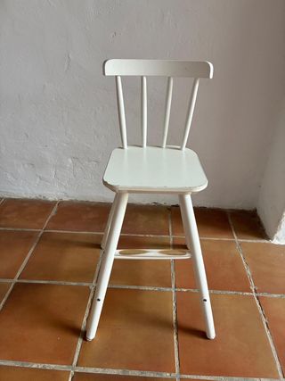 Si tu hijo es demasiado mayor para una trona pero pequeño para una silla normal, opta por una silla júnior: suficientemente alta para llegar a la mesa y con sitio para poner los pies. Ideal para disfrutar comiendo y haciendo manualidades. Solo tiene algo de desgaste en la pintura.
