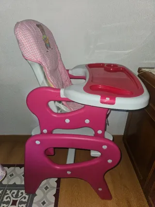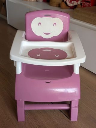 Trona infantil de color rosa con un simpático diseño. - Asiento cómodo. - Bandeja extraíble. - Estructura robusta.