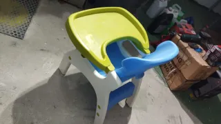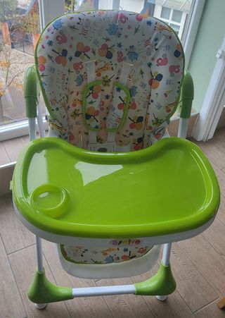 Preciosa trona para bebé, ideal para las comidas familiares. Se encuentra en muy buen estado. - Diseño colorido y alegre con motivos infantiles. - Estructura ligera y fácil de plegar para un cómodo almacenamiento. - Incluye bandeja extraíble para facilitar la limpieza.