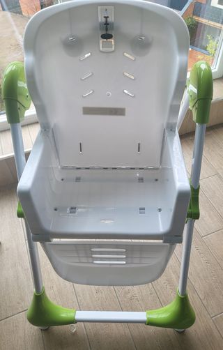 Trona polly marca chicco. Poco uso porqué estaba en una segunda casa. Se puede desmontar para lavar todo (tirantes, asiento...). También tiene 4 ruedas con freno.