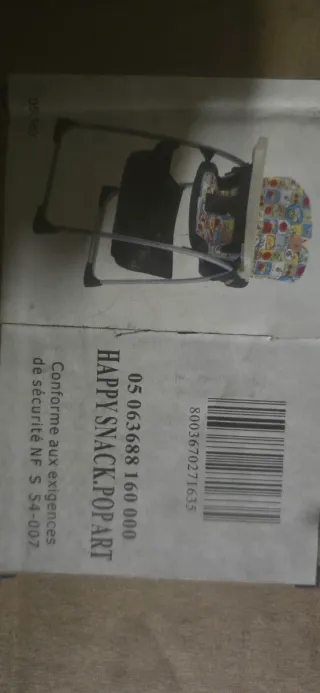Trona infantil Happy Snack, modelo Pop Art. Cumple con las exigencias de seguridad NF S 54-007. - Diseño colorido Pop Art. - Estructura metálica.