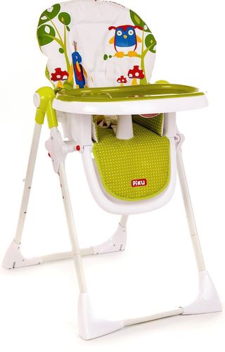 Trona evolutiva Chicco con diseño infantil. - Asiento acolchado y reclinable. - Bandeja extraíble. - Altura ajustable. - Plegable para fácil almacenamiento.