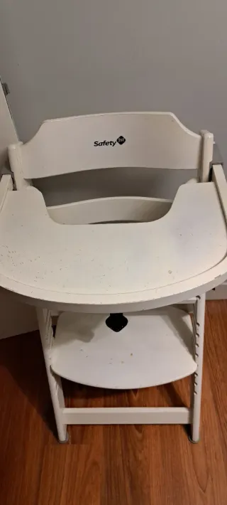 Trona de la marca Safety 1st, ideal para los más pequeños. Su diseño es sencillo y funcional. - Color blanco. - Bandeja superior. - Arnés de seguridad. -Tiene marcas en la bandeja del uso pero no astillado. - se entrega limpia y prácticamente como nueva -precio negociable