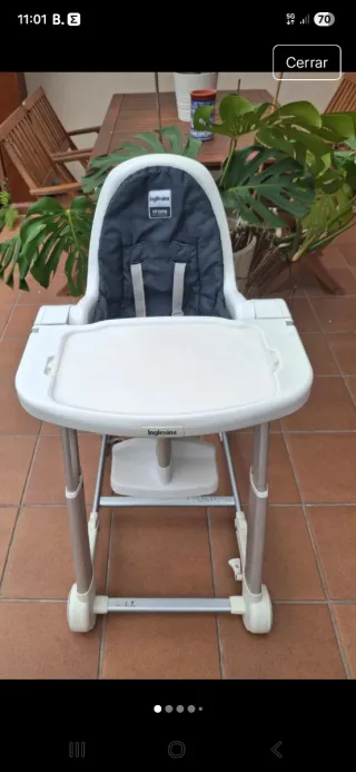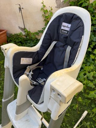 Trona de bebé de la marca Inglesina, modelo Myo. Hay que limpiarla y venirla a recoger. - Asiento acolchado y reclinable - Arnés de seguridad. - Estructura metálica. - Ruedas para facilitar el movimiento.