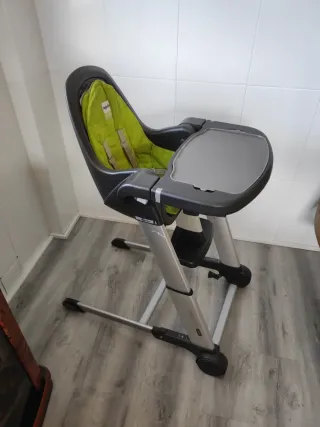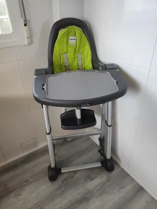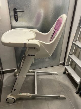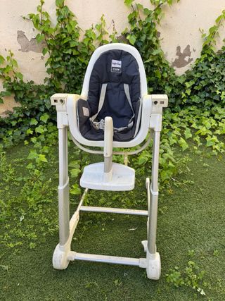 Trona de la marca Inglesina, modelo My Time. Perfecta para las comidas del bebé. - Asiento acolchado y reclinable - Bandeja extraíble. - Arnés de seguridad. - Ajustable a distintas alturas. Nueva desde 160€.