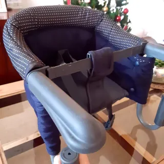 Trona portátil marca Inglesina que se acopla a la mesa para que los más pequeños puedan comer. - Diseño acolchado para mayor comodidad. - Sistema de arnés de seguridad. - Estructura resistente. - Bolsa incorporada para guardarla.