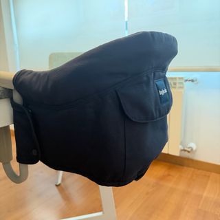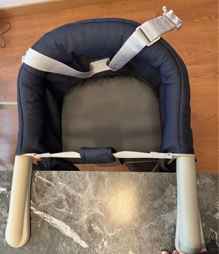 Ideal para llevar a cualquier parte. Se adapta fácilmente a la mesa. - diseño compacto - fácil de instalar y guardar - incluye bolsa para guardarla y transportar. Está un poco sucio el asiento por el uso.