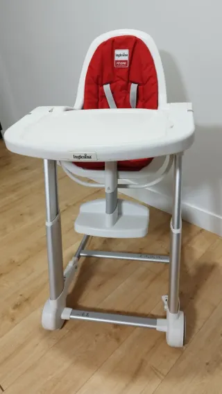 PODRÍA NEGOCIAR EL PRECIO RAZONABLEMENTE! Vendo trona Inglesina Zuma (modelo MHome) en color blanco + rojo (o "blanco y asiento rojo"), usada pero en muy buen estado. • Marca de prestigio Inglesina, modelo Zuma/ MHome - diseño moderno, varias posiciones de altura y respaldo reclinable. • Incluye bandeja extraíble, arnés de seguridad, ruedas delanteras para mover fácilmente. • Asiento acolchado en rojo, se ve bien, sin manchas ni roturas. • Muy buena opción para bebé / niño pequeño, ideal para quienes buscan calidad. • Precio original ~206 € (2013) • La envío en su caja original e incluyo sus instrucciones