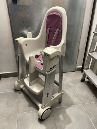 Trona de la marca Inglesina, ideal para bebés y niños pequeños. - Asiento acolchado. - Arnés de seguridad. - Bandeja extraíble. - Ruedas para movilizarlo sin esfuerzo
