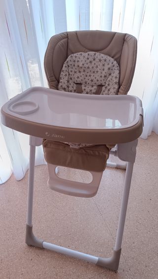 Trona gris marca Jané, modelo Mila. Altura totalmente regulable. Asiento reclinable (para esa siesta mientras los papis terminan de comer :-) Plegable y con ruedas para desplazarla fácilmente. Bandeja extraíble y funda lavable. (Tiene cintas para sujetar al bebé, en las fotos no aparecen)