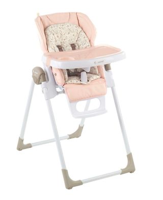Trona para bebé de la marca Jane, modelo Mila, en color rosa y acabado polipiel. - Asiento acolchado. - Bandeja extraíble. - Plegable para fácil almacenamiento.