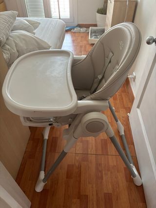 Trona de bebé de la marca Nuna, en muy buenas condiciones. - Color beige. - Arnés de seguridad de 5 puntos. - Bandeja extraíble.