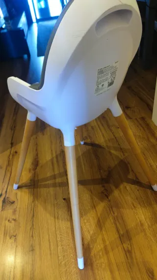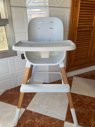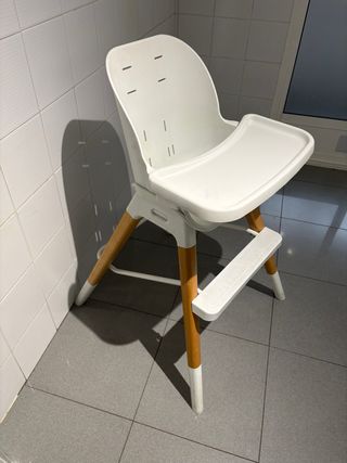 Trona Olmitos evolutiva en muy buen estado. Es cómoda y fácil de limpiar. - Diseño moderno y funcional. - Patas de madera y estructura blanca. - Bandeja extraíble. Tiene otra extensión de 4 patas para hacerla más alta que están sin estrenar Su precio nueva fue de 150€