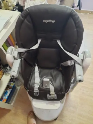 Trona de bebé de la marca Peg Perego, ideal para las comidas. - Asiento acolchado ( era de polipiel y lo he rascado entero. Tengo dos fundas que regalo para poder poner un lavar cada vez que se manche) - Bandeja extraíble. - Estructura robusta y estable. Está en buen estado y funciona perfectamente. Sirve para comer y hacer siesta. Muy práctica