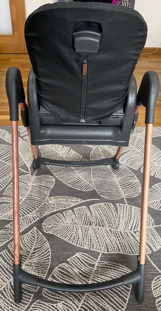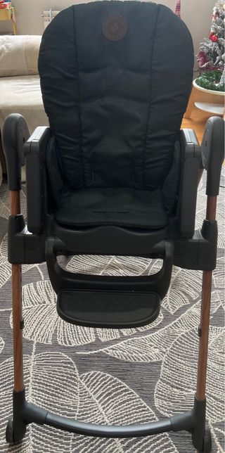 Trona evolutiva de la marca Maxi Cosi, diseñada para adaptarse al crecimiento del bebé. - Color negro y gris - Patas con acabado imitación madera -posiciones de reclinado variadas - regulable en altura - plegable ( ocupando poco espacio) - está como nueva. Poco uso por estar en casa de los abuelos. - se entrega con todo , a pesar de que la bandeja, cojín y cinturones no se muestren en la foto, por estar guardados en la caja original. - precio original de 175 euros.