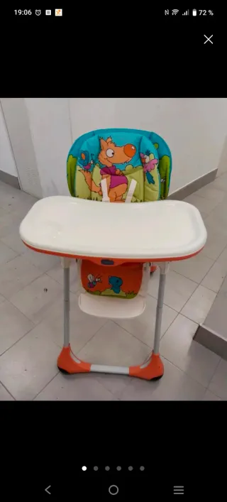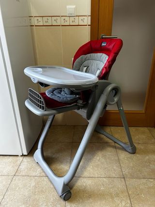 Trona infantil chicco. - Asiento acolchado con doble alchado que se retira en función del crecimiento. - Bandeja extraíble. Sobre bandeja. - Estructura plegable para un fácil almacenamiento. No sólo se pliega doblándola, se puede subir y bajar en altura con lo que ocupa todavía menos. - Base con patas antideslizantes. -Cinturones regulables en altura. -Reposapies con opción a quitarlo y ajustarlo a la altura. -Reclinable completamente. -Desmontable para limpieza. -Posicion final como silla elevable para comer en la mesa. ENTREGA EN PERSONA NO HAGO CAMBIOS NI DEVOLUCIONES