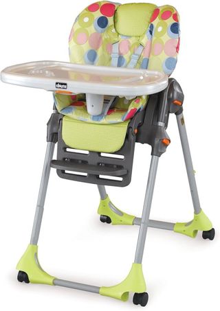 Trona evolutiva Chicco Polly Progres5, ideal para acompañar el crecimiento del bebé. - Diseño moderno con estampado de puntos. - Asiento acolchado y reductor. - Bandeja extraíble. - Estructura robusta y plegable.