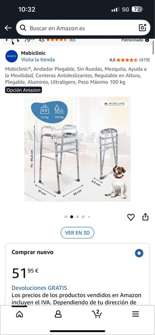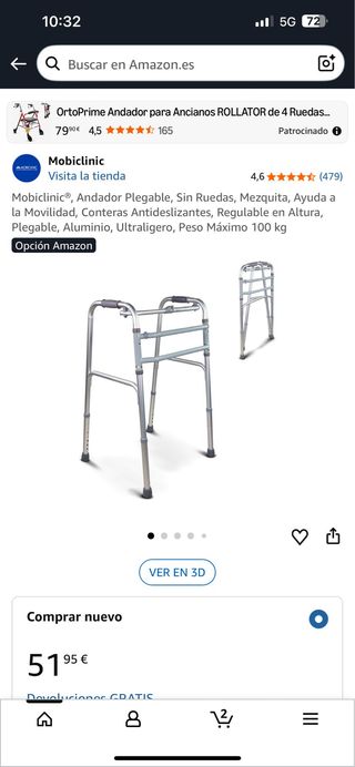 Andador ligero y fácil de plegar.pvp sobre los 125 euros - Estructura de aluminio. - Asiento acolchado. - Ruedas para facilitar el desplazamiento.