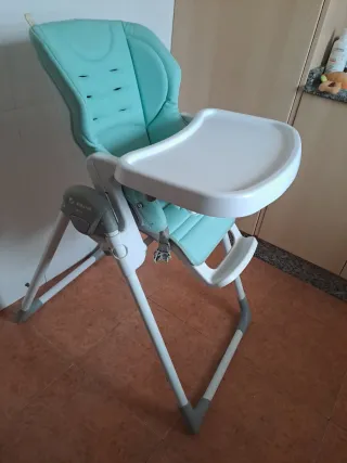 Trona de bebé en muy buen estado tiene algunos años, pero se le ha dado poco uso, muy buena calidad y marca Chicco Cam. Resistente, la funda que cubre la silla es material tipo piel, es plegable, se puede regular a diferentes alturas al igual que los posa pies, y otro regulador por si el bebé se duerme, tumbar la silla hacia atrás, tiene un protector de plástico para la mesa y un cesto debajo de la silla. Se vende por falta de uso. Se hace envío a todo el país.
