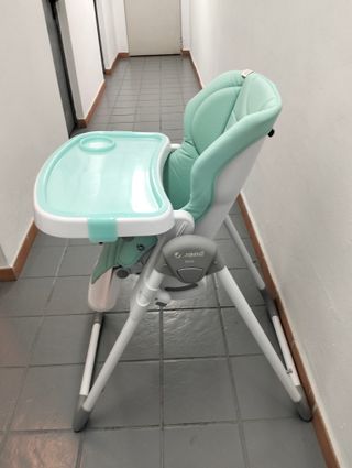 Trona Jane Mila en color menta, ideal para las comidas de tu bebé. Es cómoda y fácil de limpiar. - Asiento acolchado. - Bandeja extraíble. - Estructura plegable para un fácil almacenamiento.