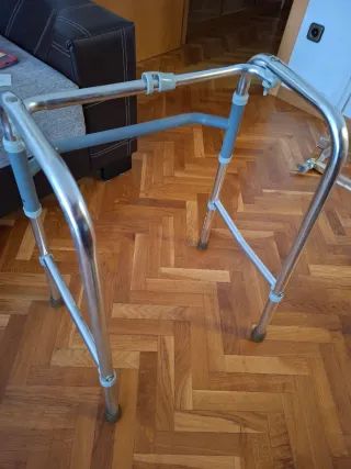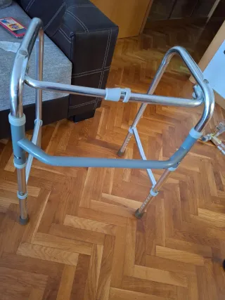 Andador ligero y fácil de plegar, ideal para facilitar la movilidad. - Estructura de aluminio. - Empuñaduras cómodas. - Patas ajustables en altura.