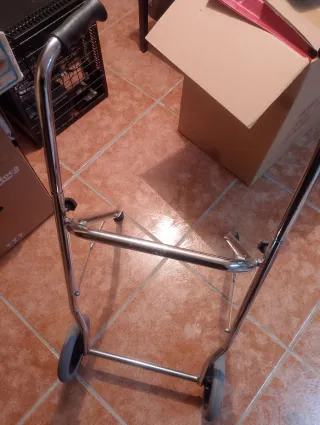 Carro andador con asiento. Marca: Carlett. Color: granate. Plegable. Asiento con compartimento de almacenaje delantero y cesta de almacenaje superior trasera. Muy buen estado. - Asiento incorporado. - Diseño plegable para un fácil almacenamiento. - Ruedas giratorias para mayor maniobrabilidad.