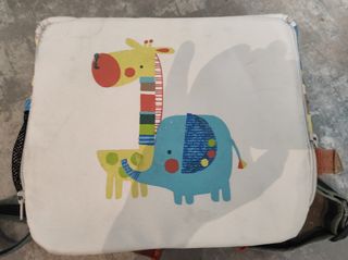 Bolso trona portátil de la marca Jané, ideal para que los más pequeños coman cómodamente fuera de casa. - Diseño con estampado de ositos y estrellas. - Asientos acolchados. - Arnés de seguridad. - Cierre de seguridad.
