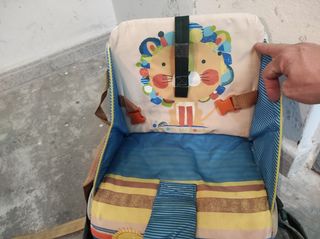Trona de viaje, portátil Jané. Con sujeciones al respaldo y asiento de la silla. Acolchado unisex. Estructura muy rígida. Se convierte en bolso. Muy buen estado.