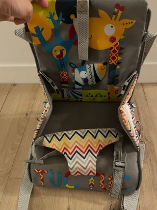 Preciosa trona portátil de la marca Tuc Tuc, ideal para llevar a cualquier parte. Se encuentra en muy buen estado. - Cómoda y fácil de plegar. - Diseño infantil con estampados coloridos. - Correas de sujeción para mayor seguridad.