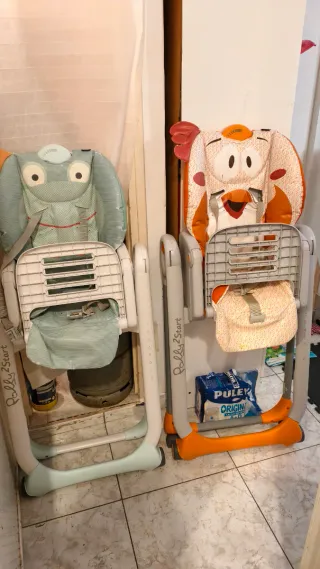 Trona evolutiva Chicco Polly Magic, ideal para acompañar el crecimiento del bebé. - Asiento acolchado y reductor extraíble. - Bandeja extraíble y lavable. - Altura regulable en varias posiciones. - Respaldo reclinable. - Plegable para un fácil almacenamiento. - Arco con juguetes - Compradas en el 2024 - 2 unidades ( 1 color gris, 1 color azul)