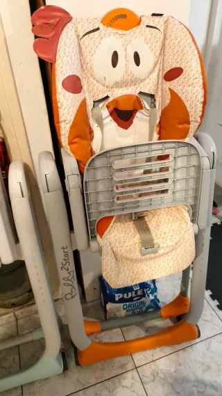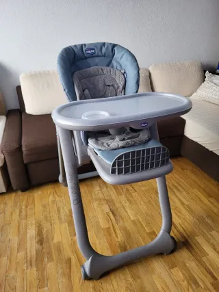 Trona Chicco muy útil!! Es una trona muy completa ya que tiene varios niveles de altura y se puede poner bajo para usarla de silla. También se reclina el respaldo en varias posiciones por si el bebe se quiere echar una siesta después de comer y se puede plegar por si necesitad guardarla o dejarla apartada mientras no la usas. Es muy cómoda y está muy bien.