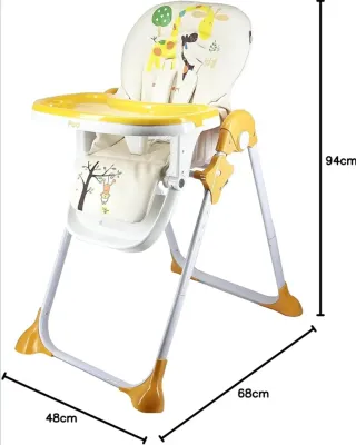 Trona para bebés con un divertido diseño de jirafas. Es reclinable y cuenta con una bandeja doble extraíble. - Altura regulable en 6 posiciones. - Color blanco y naranja. le falta uno de los arnes de arriba, yo le ponia el de abajo y era suficiente y mas comodo incluso.
