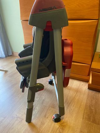 trona plegable. Altura ajustable. Reclinable. Se puede lavar en la lavadora. Se guarda facilmente detras de una puerta. Bandeja extraible y se guarda detras. La parte de arriba de la bandeja se quita para lavarla mejor.