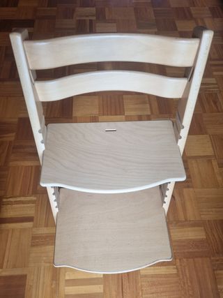 Silla Stokke Tripp Trapp. - Clásico del diseño escandinavo. - La silla "que crece con el niño/niña". - Fabricada en madera de haya. Color natural. - Diseño ergonómico y adaptable. - Bandeja no incluida. - En buenas condiciones, pero con leves signos de uso en la balda inferior (donde se apoyan los pies) - Precio actual web Stokke 229€ (ver últimas 4 fotos de la página oficial). - Se vende montada y en persona. - No se hacen envíos.