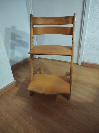 Trona infantil de madera, similar al modelo Stokke Tripp Trapp. Perfecta para que los más pequeños coman cómodamente. - Fabricada en madera. - Diseño ergonómico y seguro.