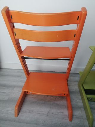 Se venden dos tronas Stokke de madera. Son ideales para que los más pequeños coman cómodamente. - Estructura de madera. - Altura ajustable.